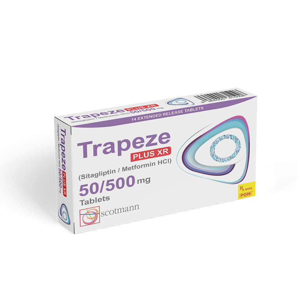 Trapeze Plus XR is a dipeptidyl peptidase-4 (DPP-4) inhibitor and biguanide combination product indicated as an adjunct to diet and exercise to improve glycemic control in adults with type 2 diabetes mellitus when treatment with both sitagliptin and metformin extended-release is appropriate. It is not recommended for the treatment of type 1 diabetes or diabetic ketoacidosis.